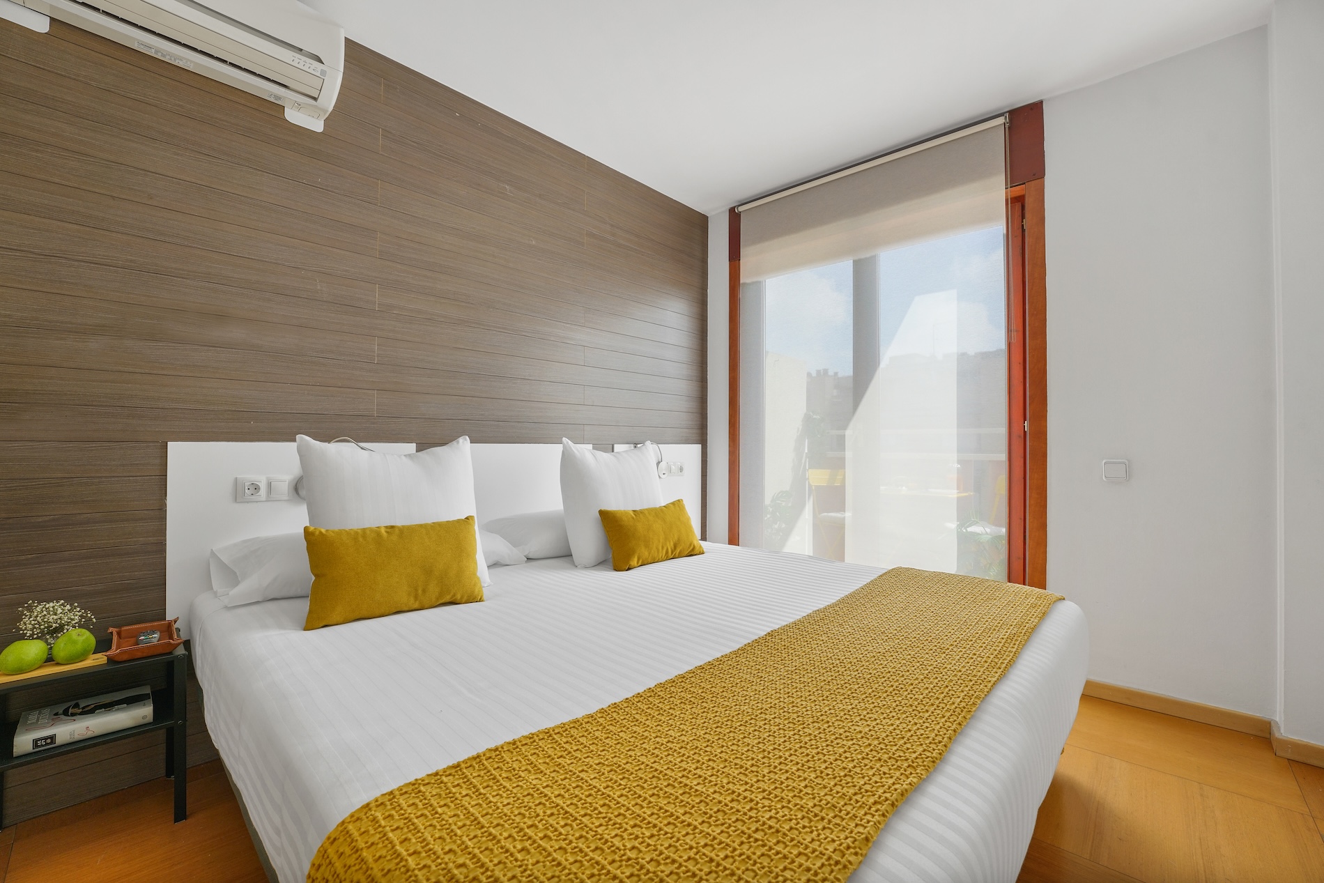 The apartments are bright, with functional décor and subtle colour details, and all have a flat-screen TV and kitchenette.