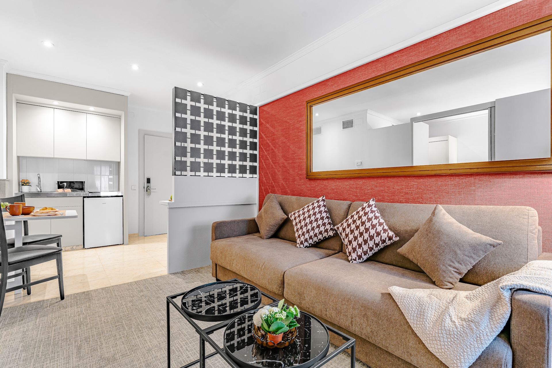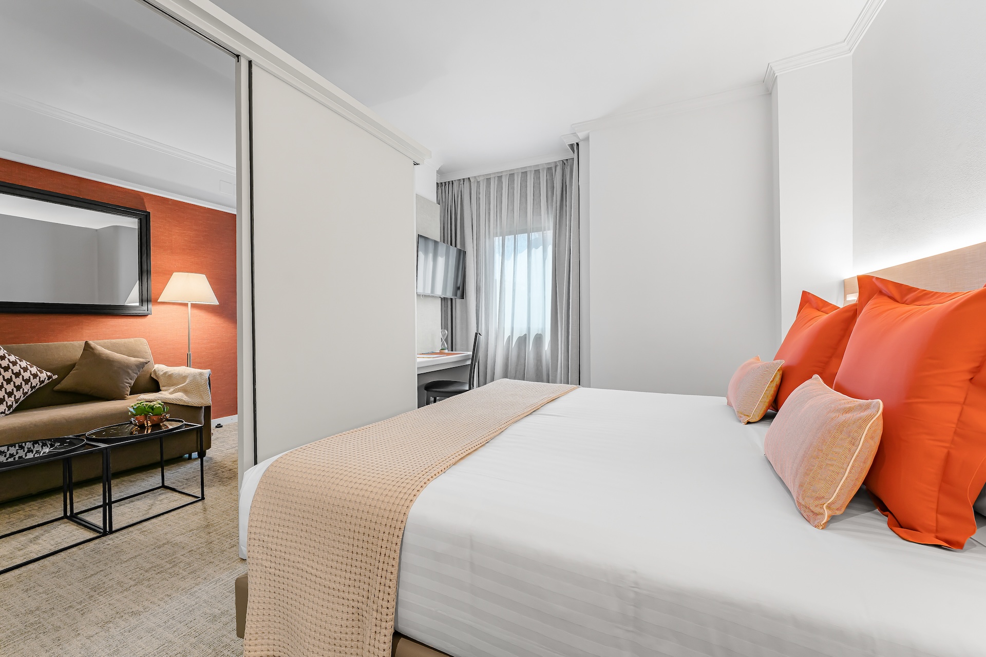 26 spacious and bright apartments with all the services of a 4-star hotel, as well as a fully-equipped kitchenette. Our Apartments/Suites can comfortably accommodate from 1 to 5 people depending on the needs of our guests. We also have connecting rooms ideal for families.